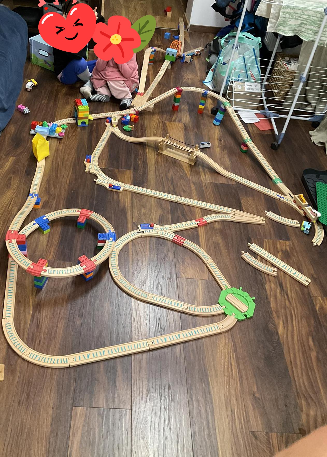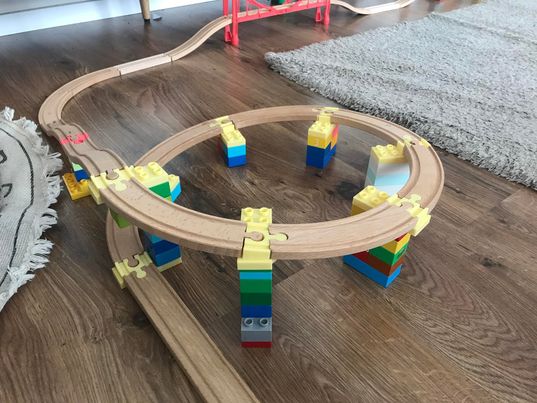 A Duplo® elemek és fa vonatsínek egyesítése nem csupán szórakoztató, hanem lehetőséget teremt a síkból kiemelkedő struktúrák megalkotására is, ezáltal a gyermekek észrevétlenül fejlesztik kreativitásukat és a kombinációs készségeiket is.