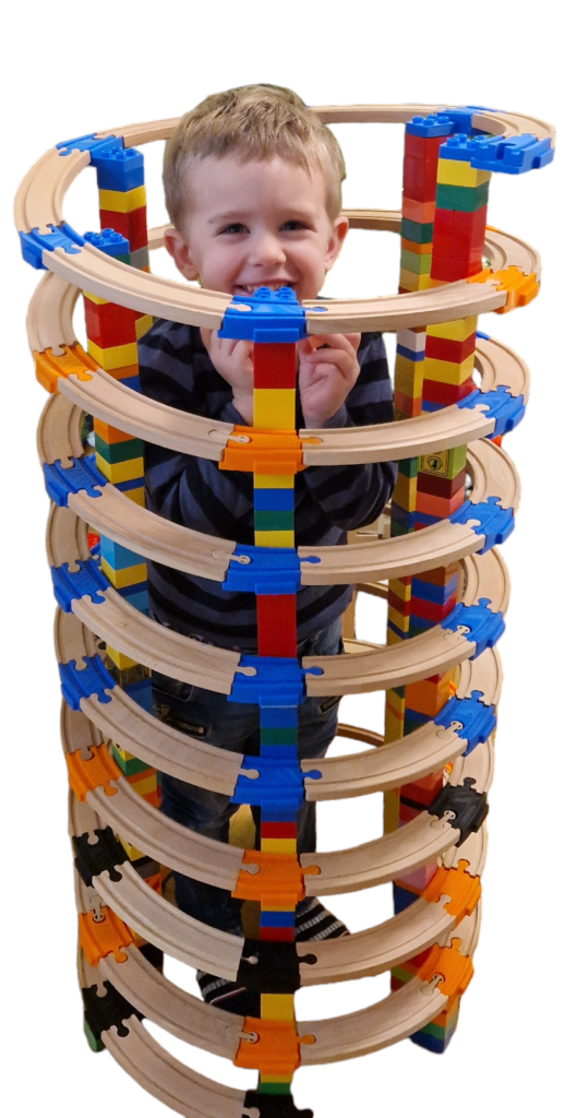 Az ötletet kisfiunk adta nekünk, aki máig lelkesen épít hatalmas spirálokat, rámpákat, hidakat és állomásokat ezekből az egyedülálló adapterekből.
