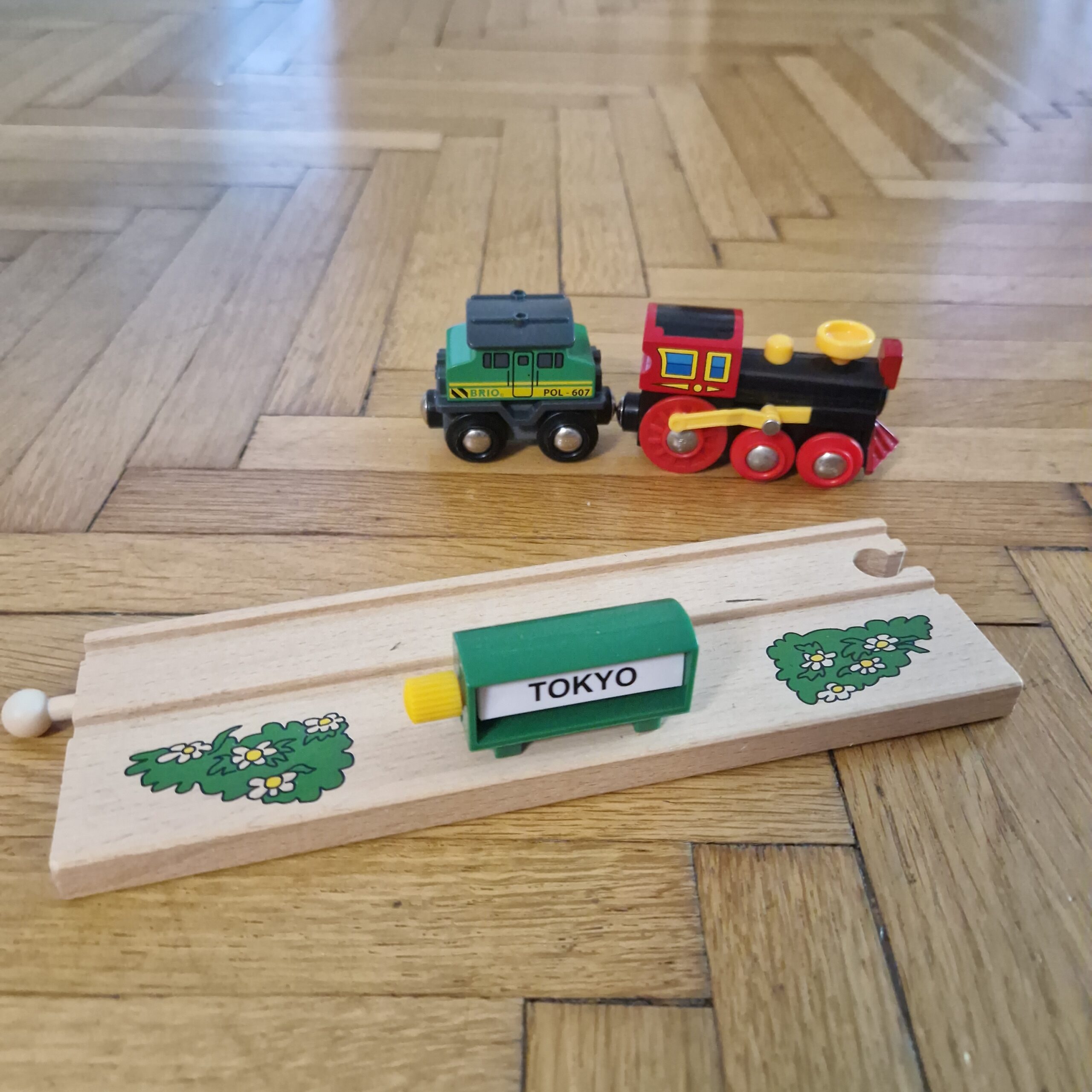 Eredeti tekerhető feliratos Brio állomás Brio kisvonattal.