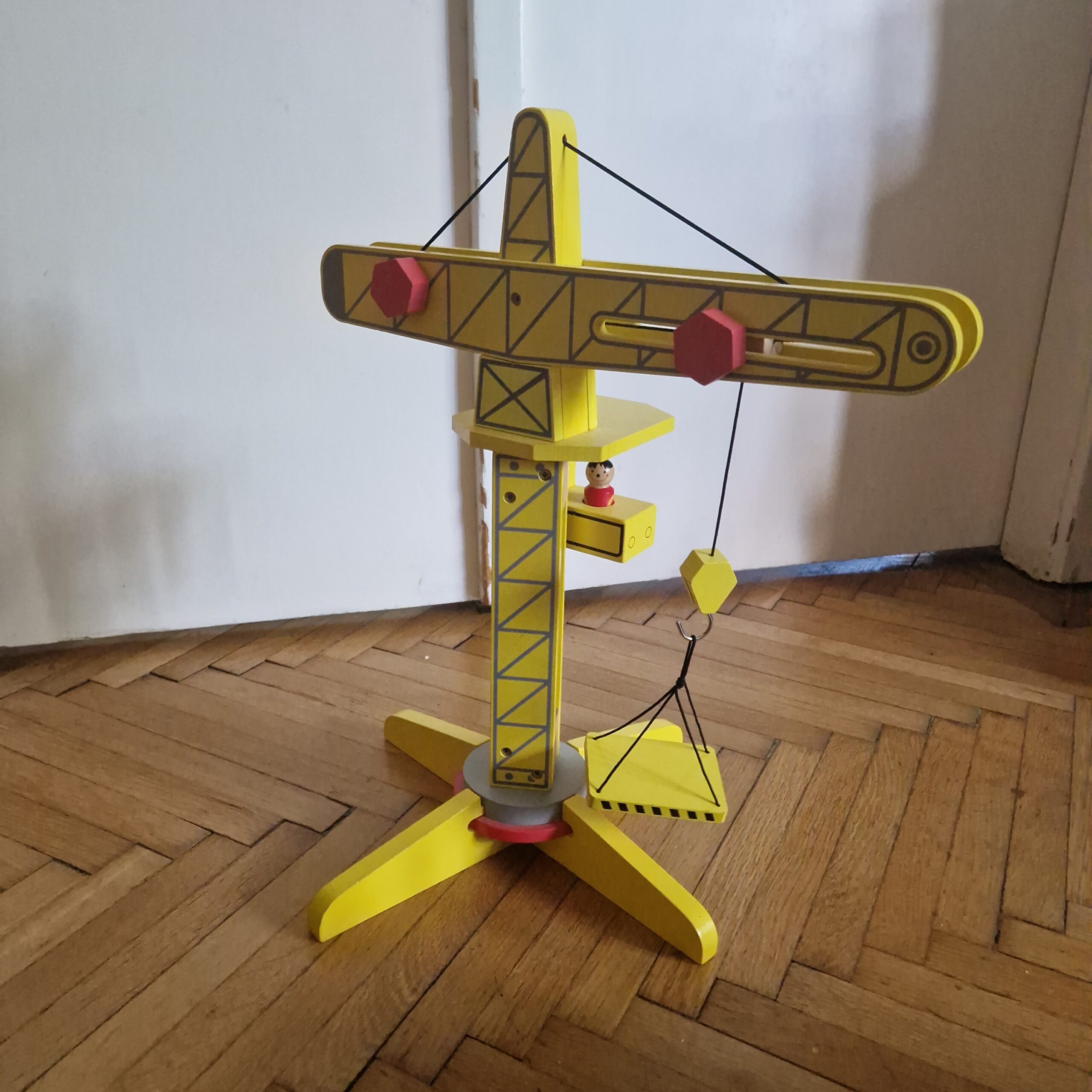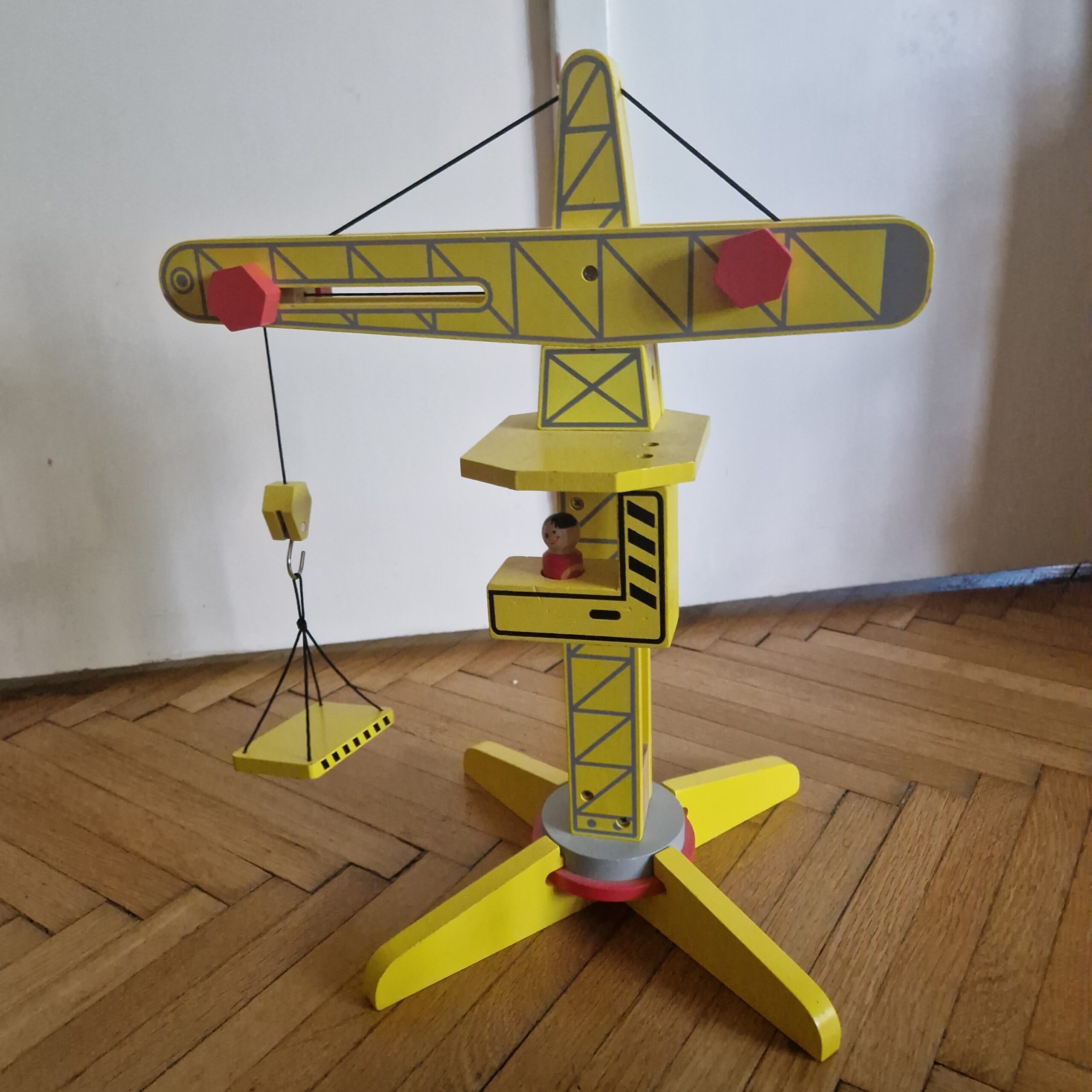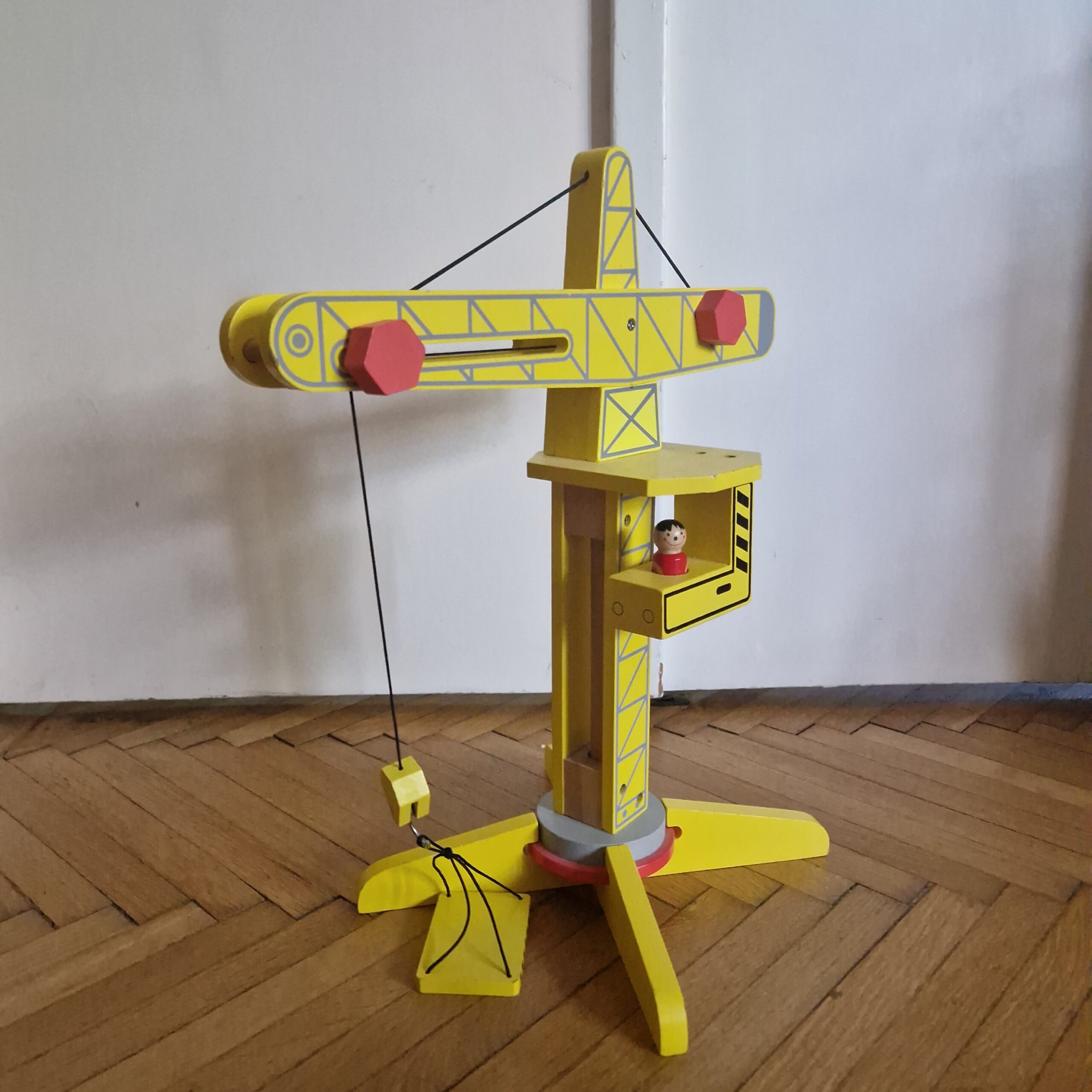Szuper gyönyörű fa daru kis figurával, emelőlappal.