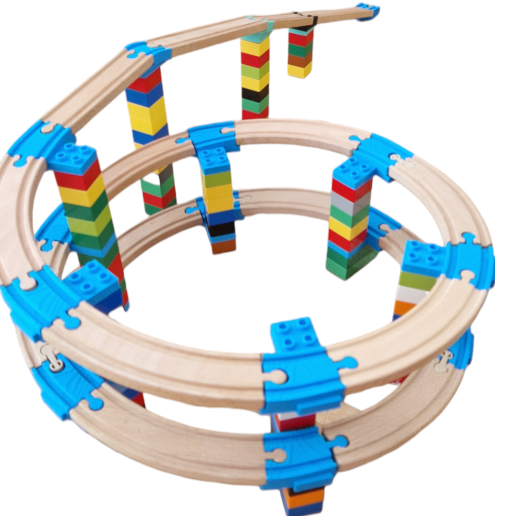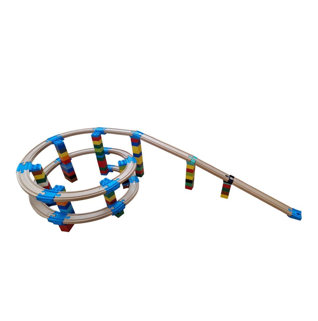 Szuper dupla spirál torony mindennel, ami csak kell hozzá. Az ár tartalmazza a fa vonatsíneket, a megépítéshez szükséges eredeti Duplo® elemeket és természetesen a SIHU adaptereket is. Ez a rámpás változat.
