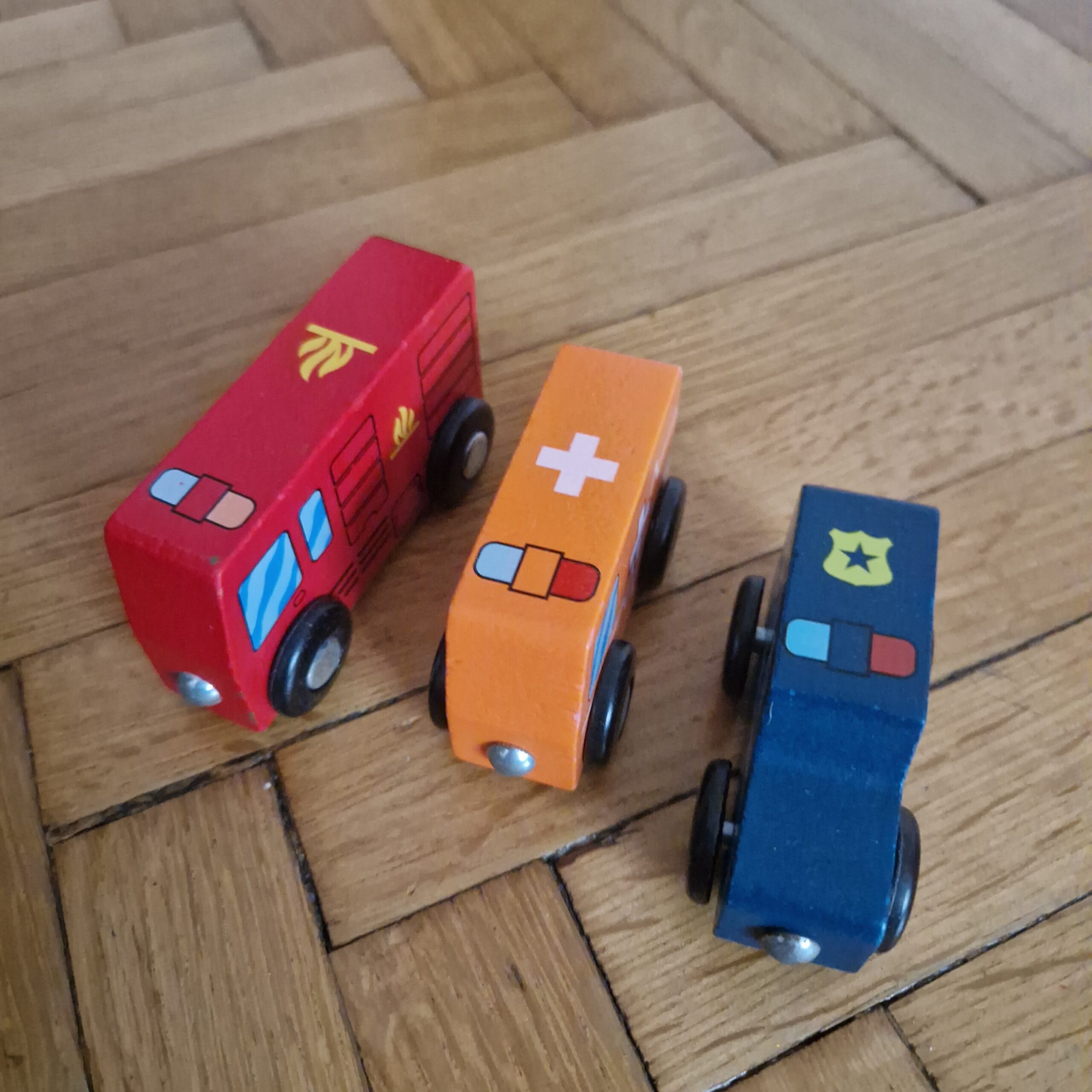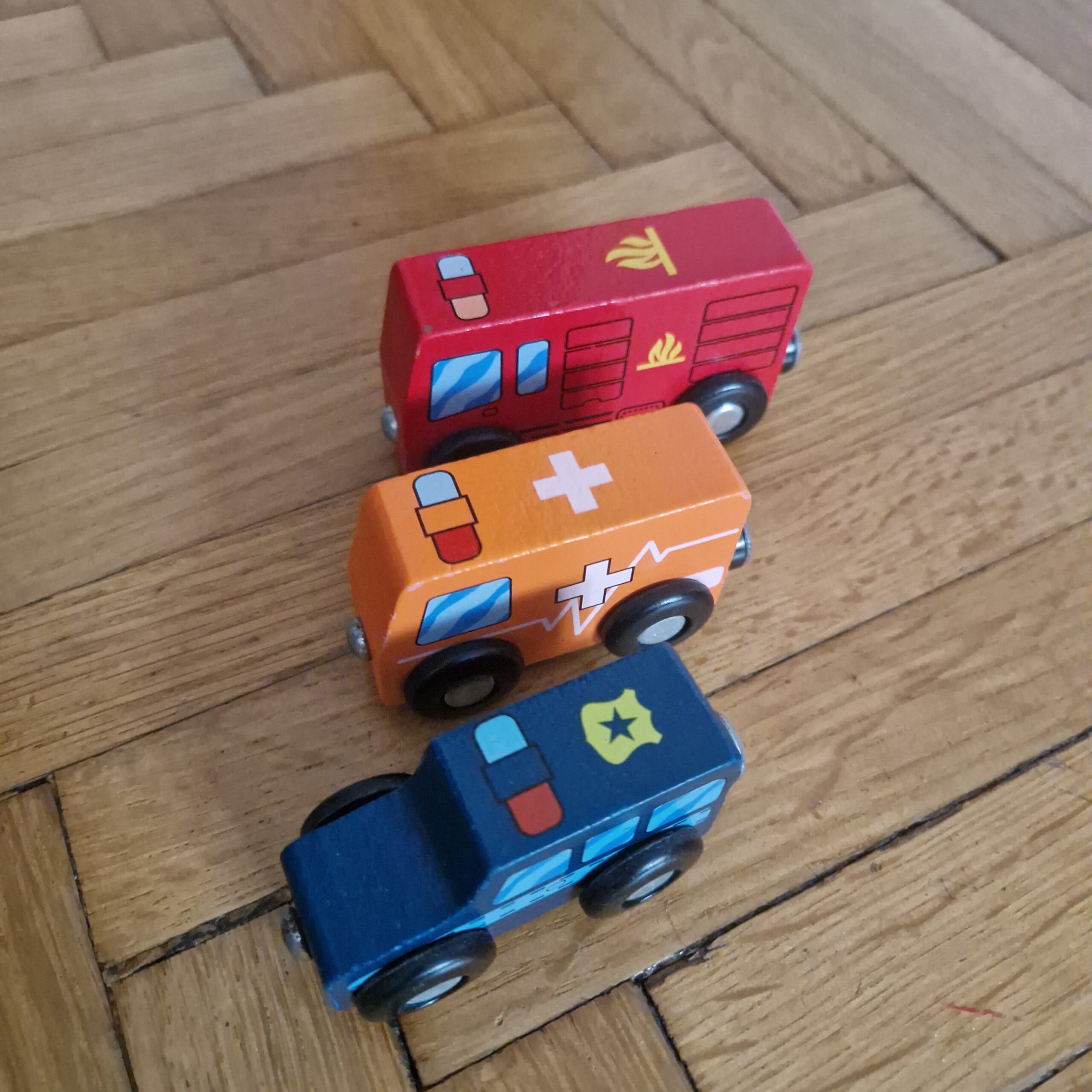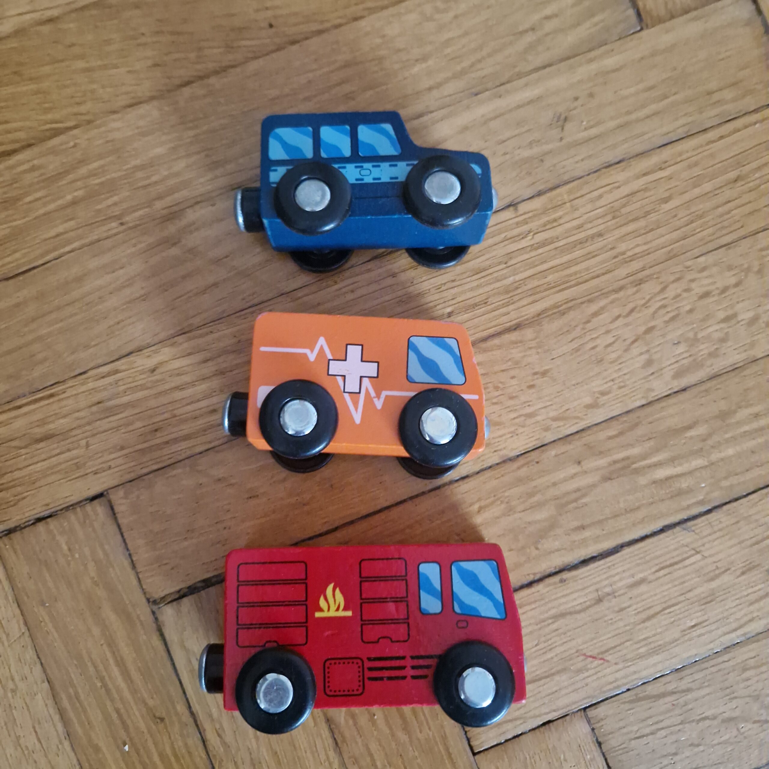 A képen látható három darab kisautó. Kompatibilis a sín és autópályákkal.
