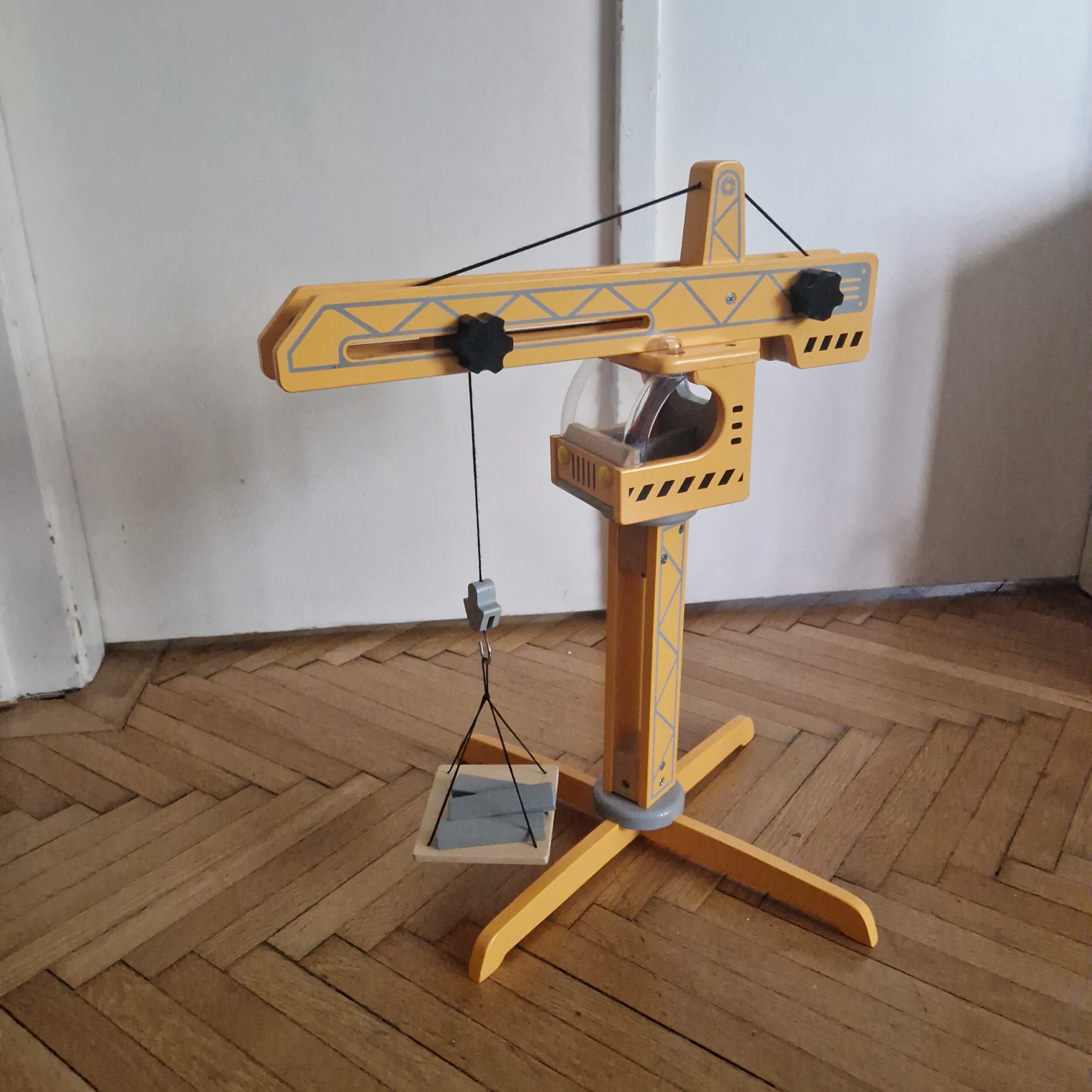 Hape márkájú gyönyörű óriás daru a képeken látható tartozékkal, kiegészítőkkel.