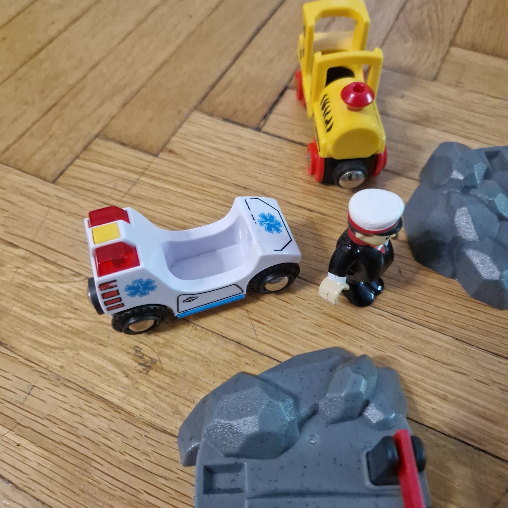 Eredeti Brio márkás kiegészítő csomag. Minden képen látható elem. Használt játék, használatból eredő kisebb kopások előfordulhatnak. A mentőautó villog és szirénázik.