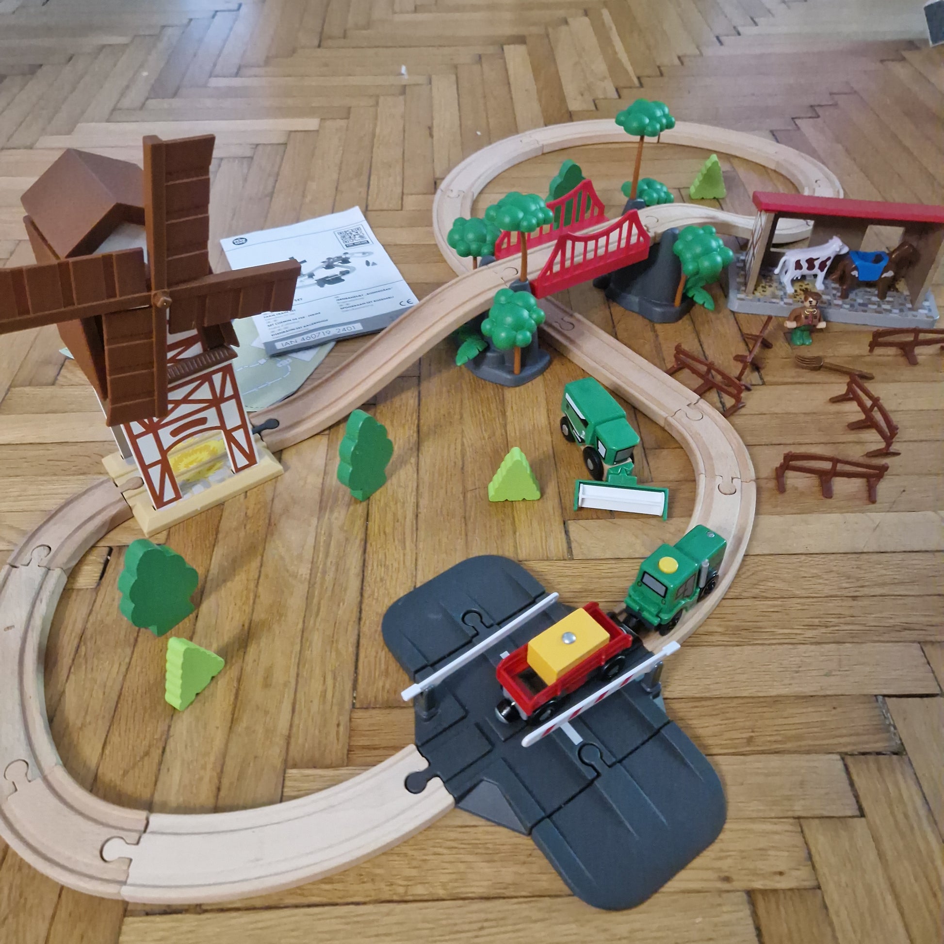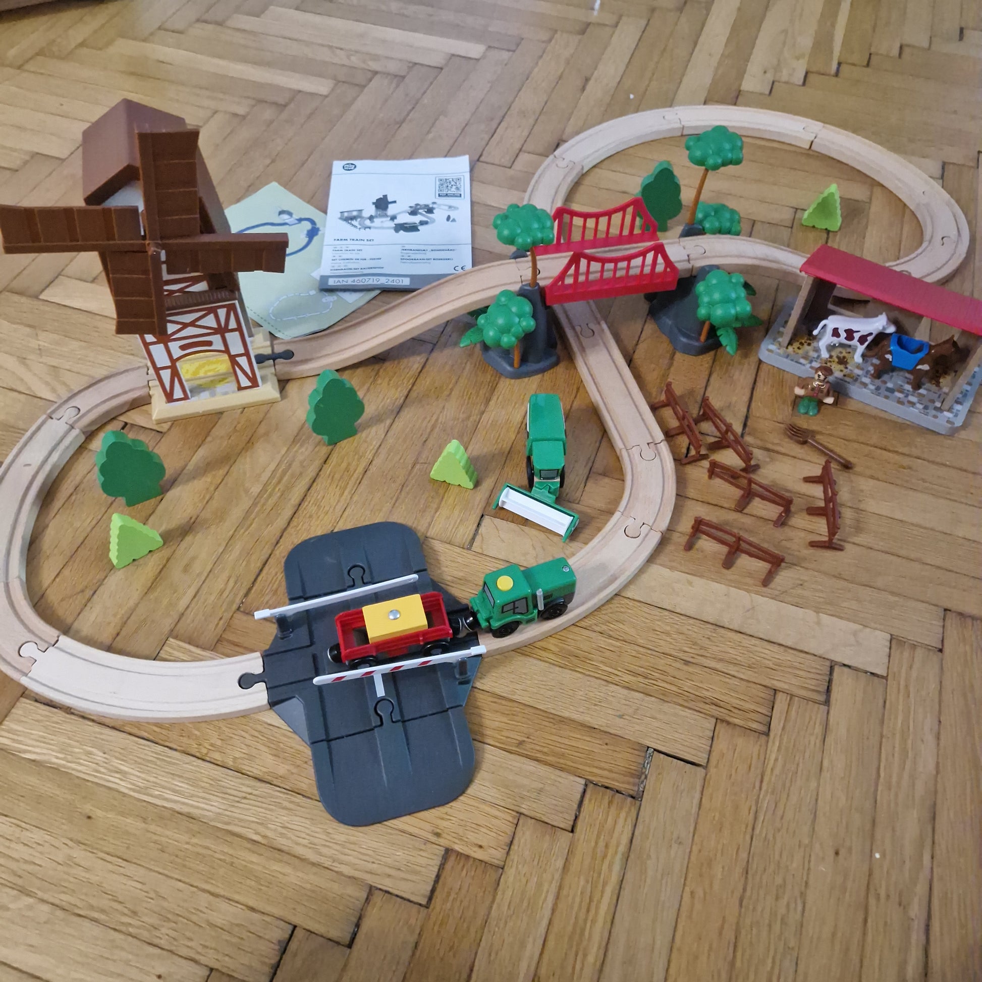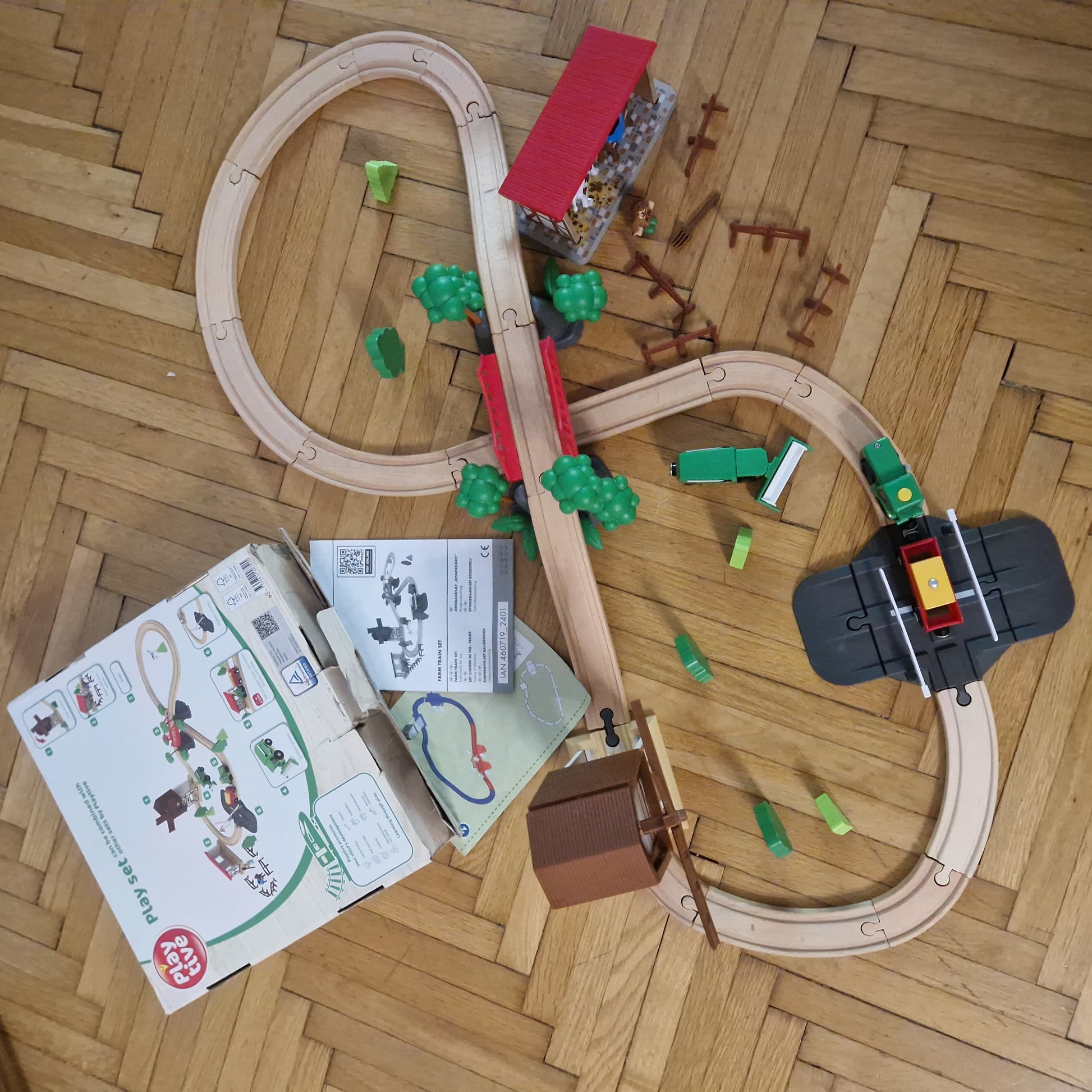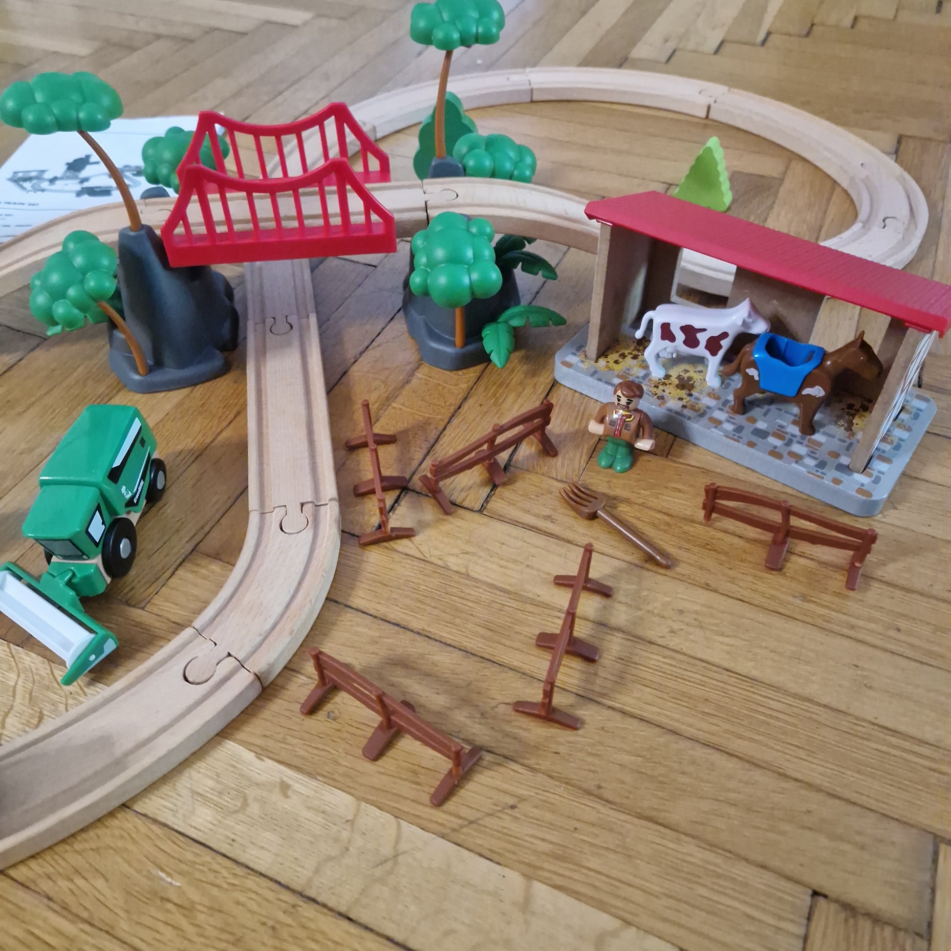 Farm vonatpálya kombájnnal, elektromos kistraktorral. Minden képen látható tartozékkal. Használt játék, használatból eredő sérülés, kopás előfordulhat.