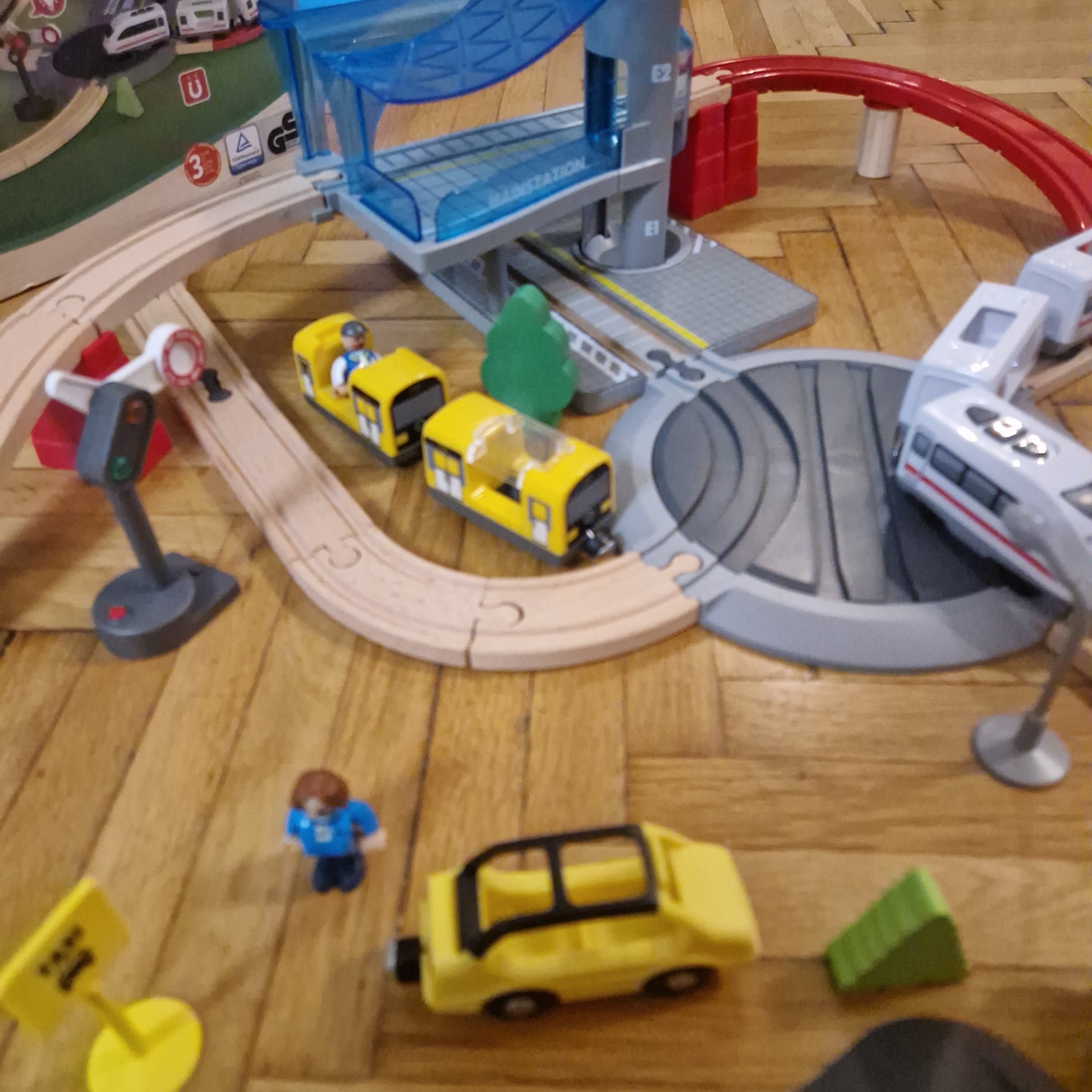 Szuper futurisztikus vonatpálya dobozában. Az állomás hangot ad, az alagút világít a vonat áthaladásakor. Elektromos kisvonattal, bekapcsolható fényjelzővel. Használt játék, használatból eredő sérülés, hiány előfordulhat. Minden képen látható tartozékával.