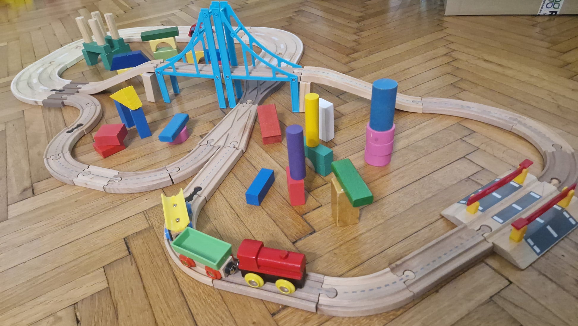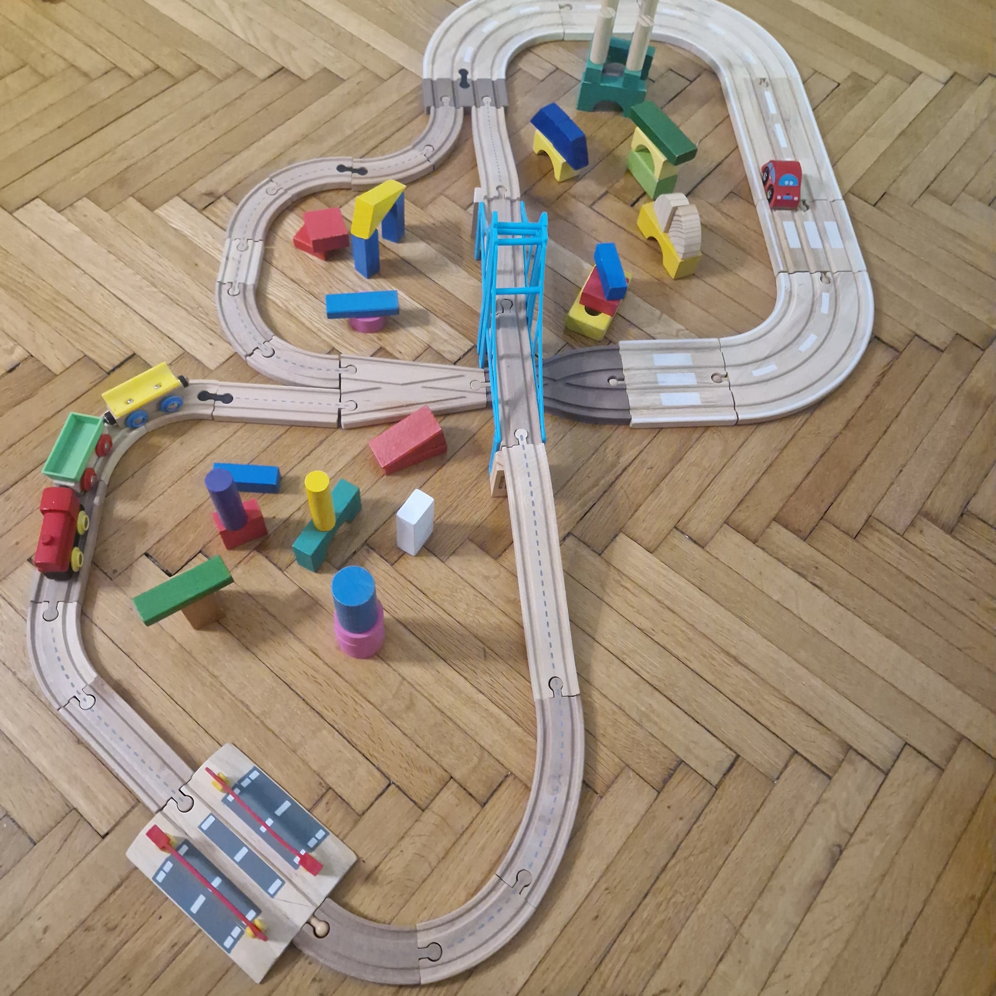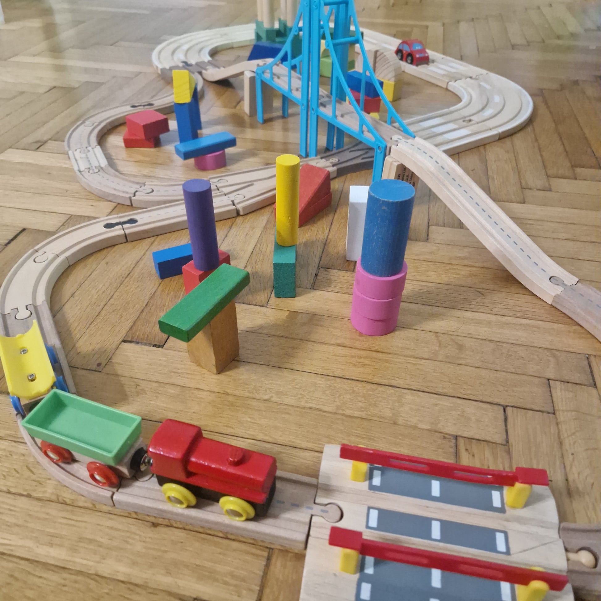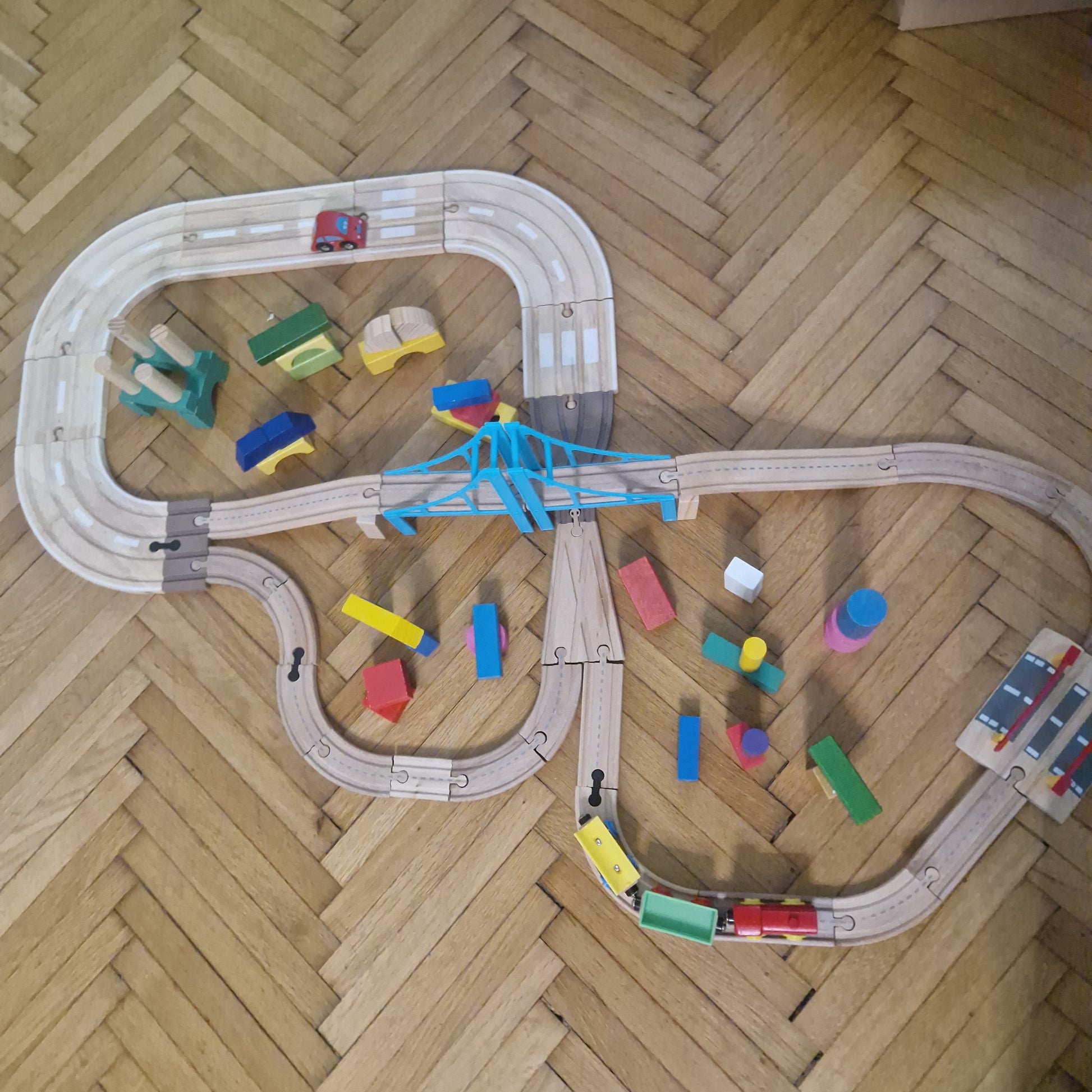 Hatalmas SIHU adapterek segítségével kombinált vonat és autópálya minden képen látható kiegészítővel. Használt játék! Használatból eredő sérülés, kopás, hiány előfordul. Sok sok kiegészítővel, kisvonattal, kisautóval.