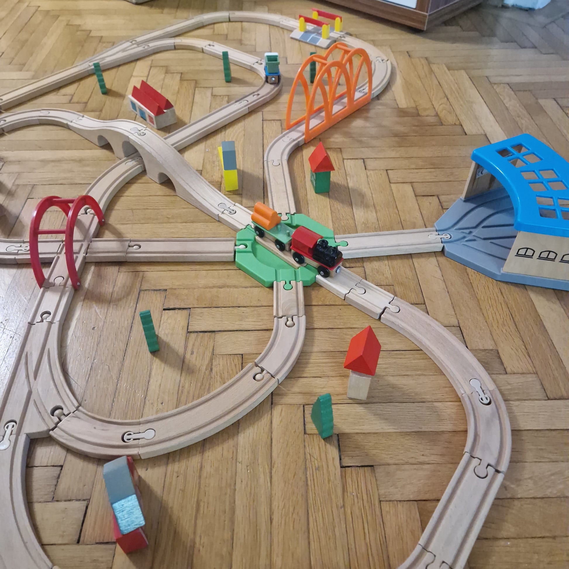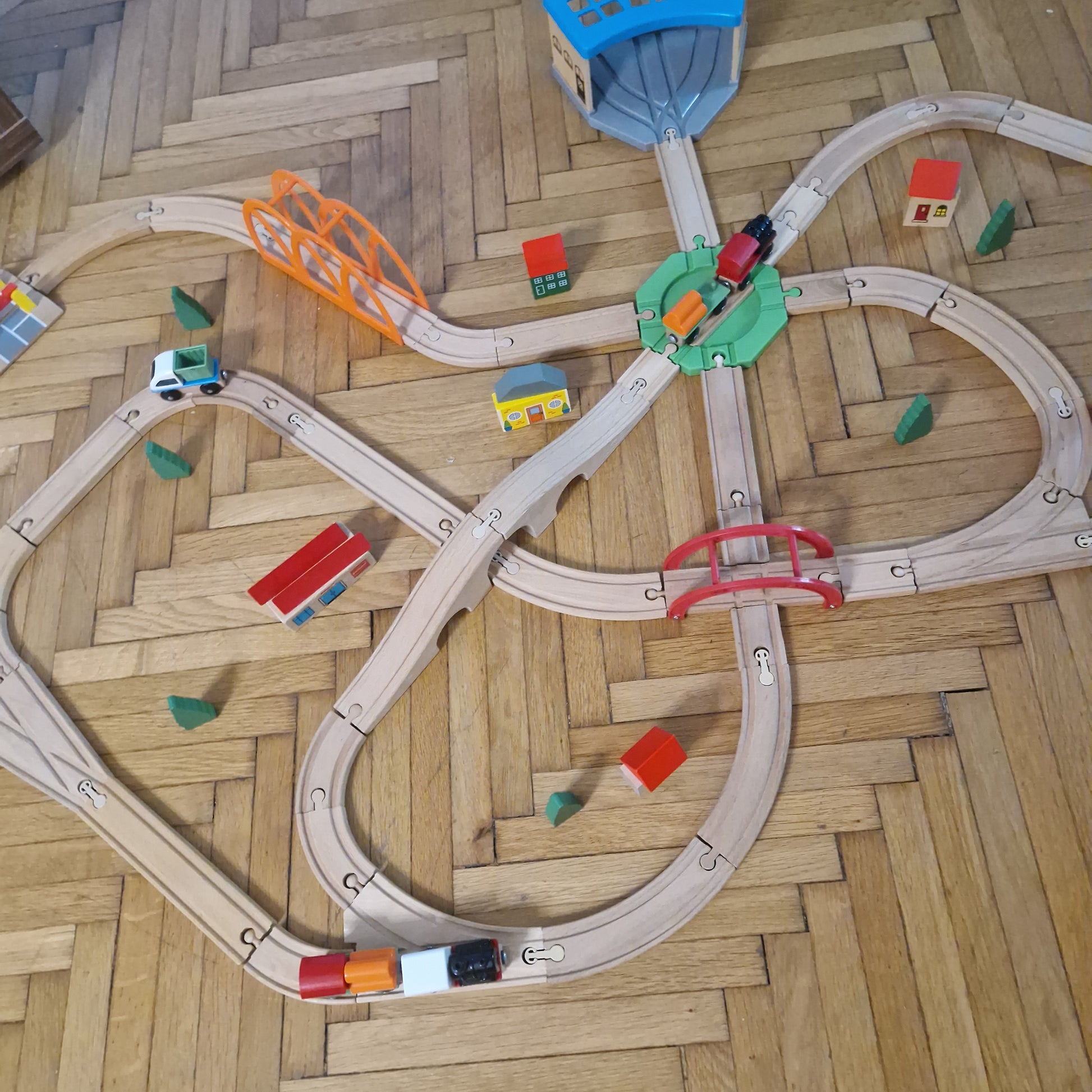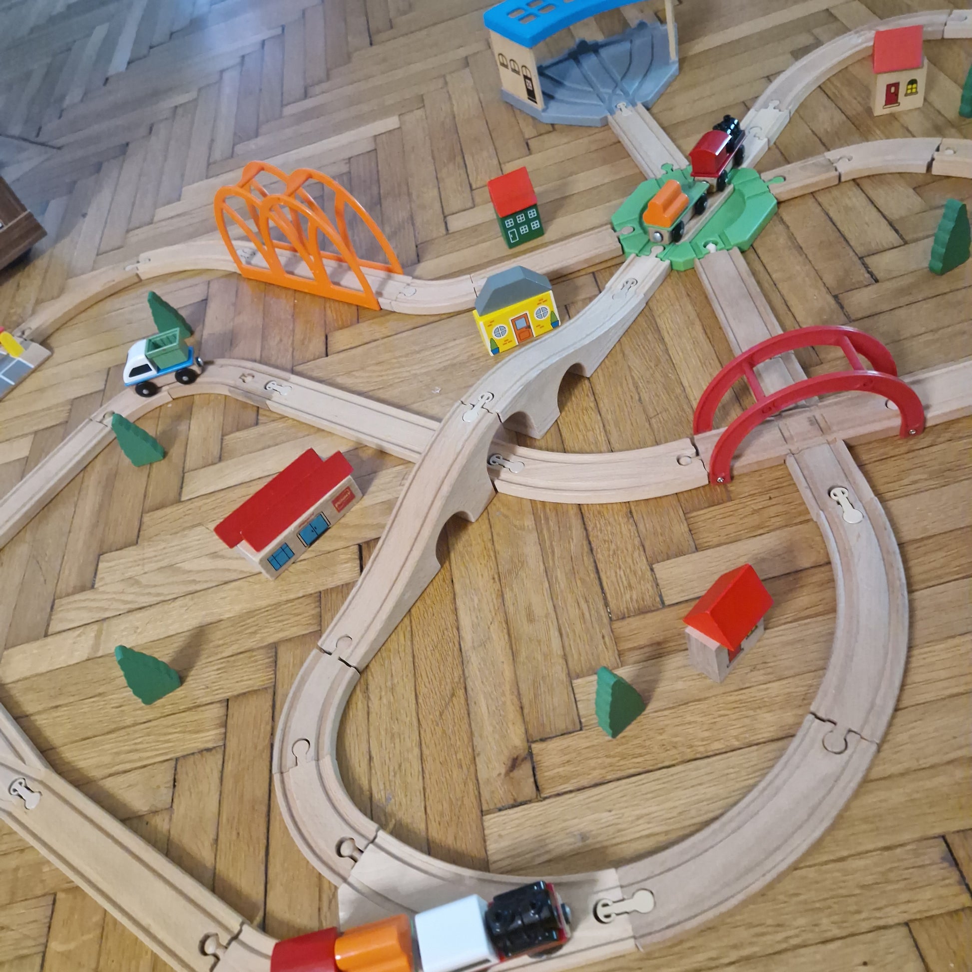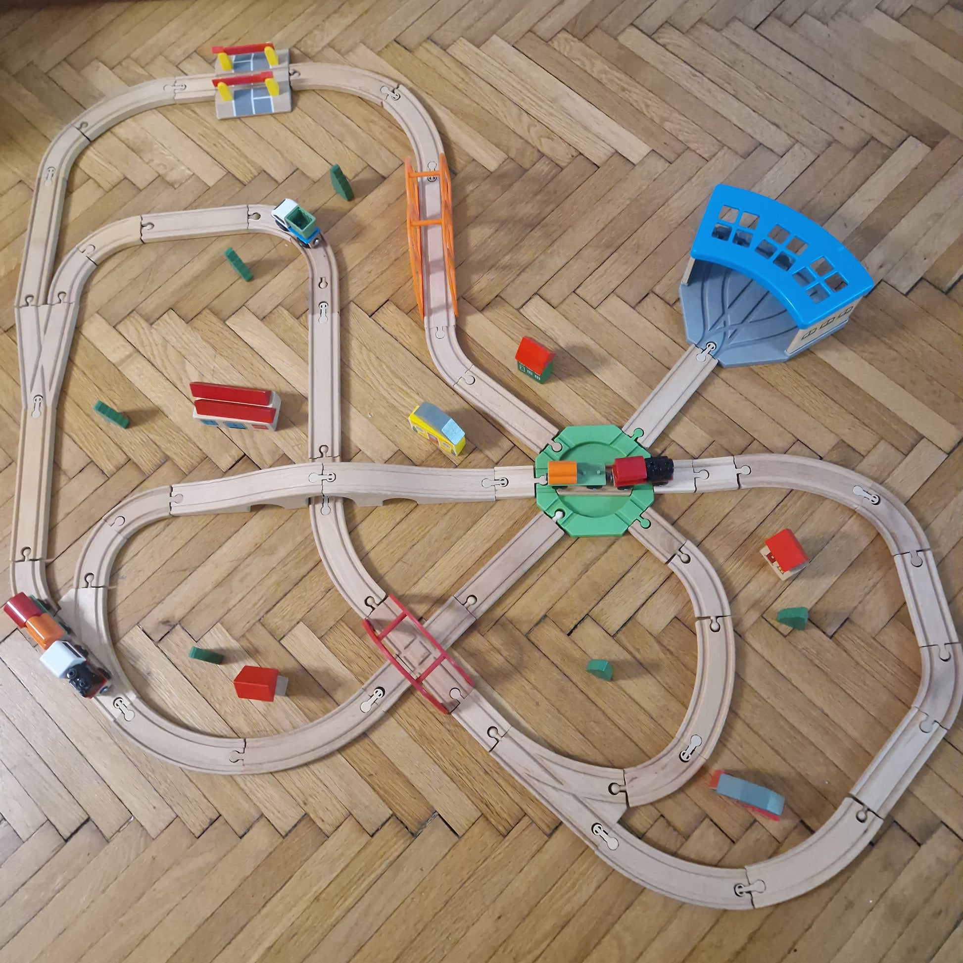 Hatalmas egyedi pálya sok sok kiegészítővel, vonatokkal, állomással. Használt játék, használatból eredő kisebb kopások előfordulhatnak. Minden képen látható tartozékkal.