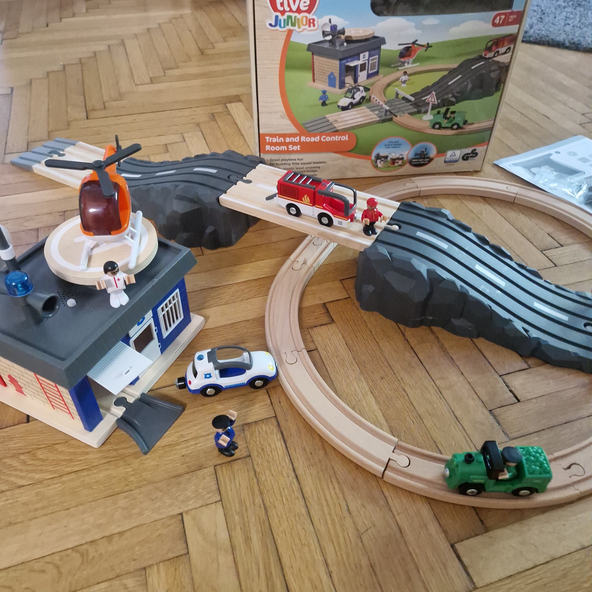 Szuper állapotban lévő különleges pályakombináció. Tűzoltó-rendőr állomással, helikopterrel. Az állomás villog és hangot ad. Minden eleme megvan. Használt játék, használatból eredő kisebb kopások előfordulhatnak. Szép állapotban!