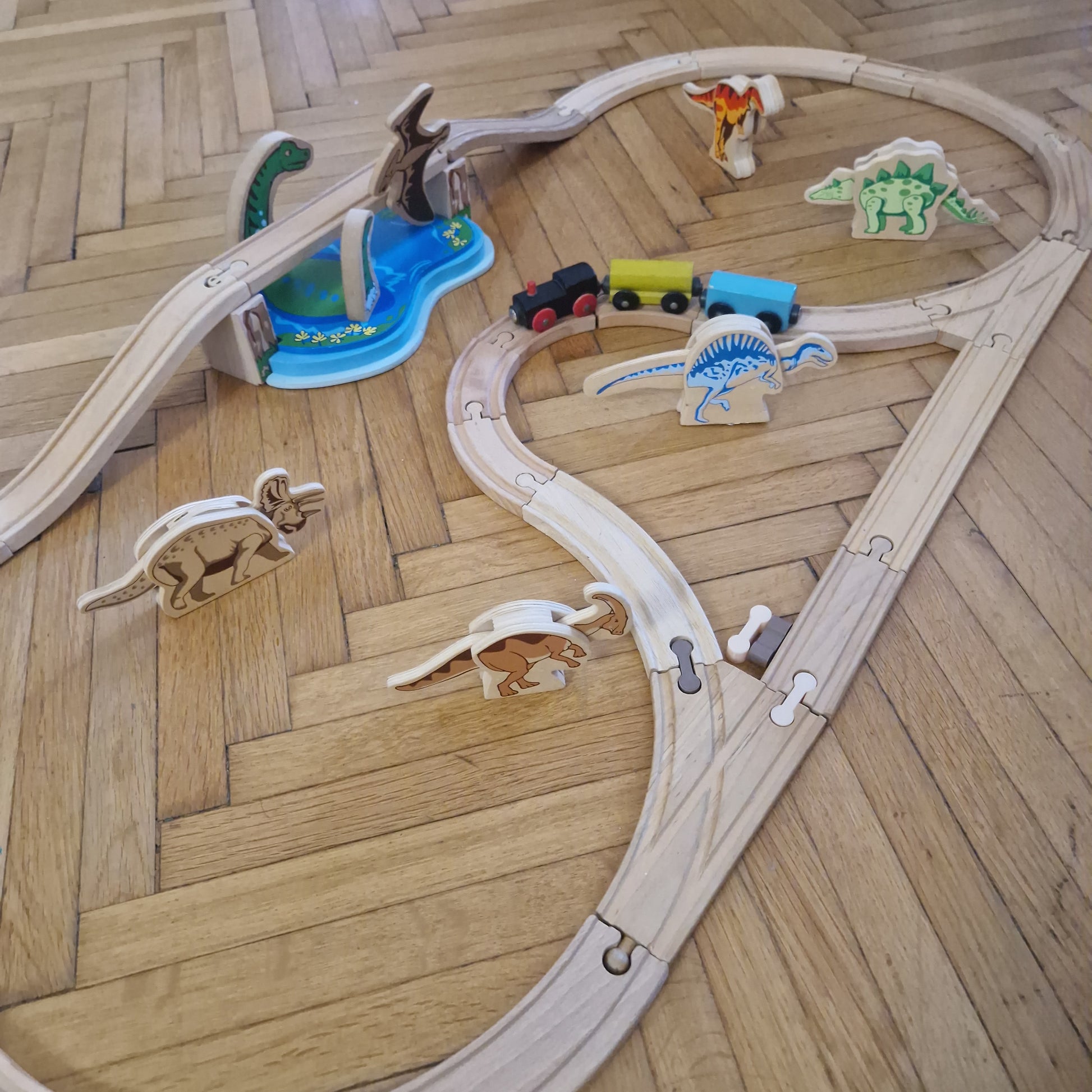 A képen látható szuper dínós vonatpálya. Használt játék minden képen látható tartozékkal, használatból eredő hiány, kopás, sérülés előfordulhat.